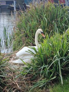 13th April 2025 – The Resident Swan on her eggs Pillings Lock Loughborough