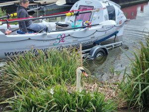 13th April 2025 – The Resident Swan watches Polly being launched with Jooles aboard