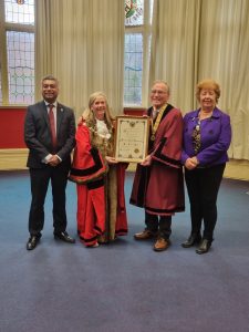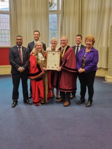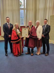 14th April 2025 – Honorary Freeman Richard Shephard with Mayor Family and Party Leaders