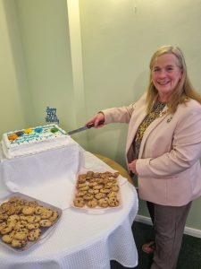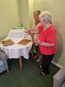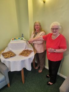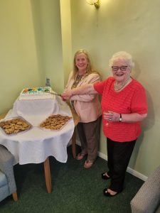 24th April 2025 – Beresford Court 50th Celebrations Joan and the Mayor Cutting the cake