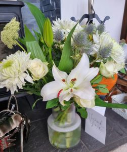 11th April 2025 – Photo with Beacon Light Winner Sheila Breed Queens Park Loughborough flowers