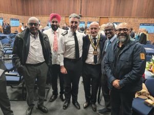 2nd April 2025 – East Midlands Airport 60th Anniversary Lord Leiutenant Mike Kapur OBE with Mayor and Mayoress of Charnwood