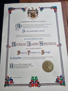 14th April 2025 – Honorary Freeman Richard Shephard with Mayor close