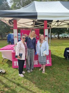 114th Sept Mayor Mayoress and Jodie from The Cookie Club stall Music in the Park