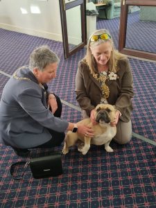 13th Sept 2024 Carpenters Arms Six Hills Mayor Mayoress with Brody the therapy dog