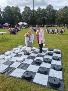 14th Sept Music in the Park Southfields Loughborough Mayor and Mayoress playing draughts