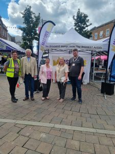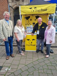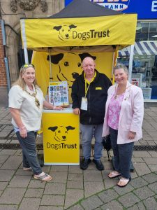 8th Sept 2024 Dogs Trust Stand with Rob Blackman Mayor and Mayoress Loughborough Town Centre PET FEST