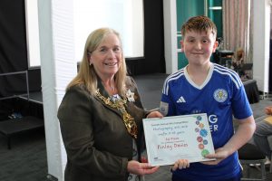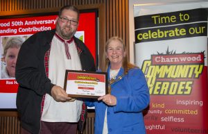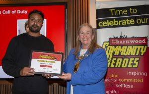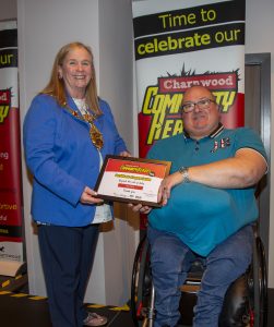 28 Sept 2024 Mayor presenting Craig Jordan Charnwood Community Heroes