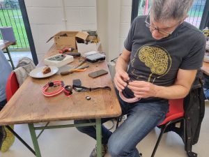 19th Oct 2024 – Repair Cafe Woodhouse Eaves Nick at work on dog collars