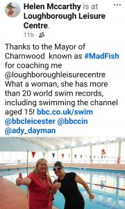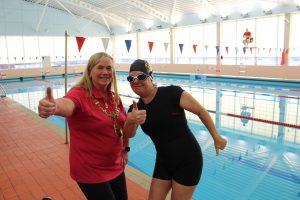 24th Oct 2024 – Swim coaching hooray Helen McCarthy and Dr Julie Bradshaw MBE Mayor of Charnwood