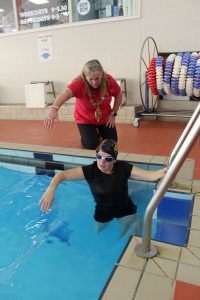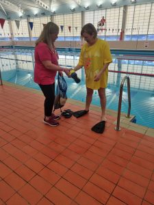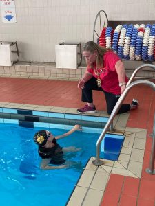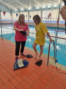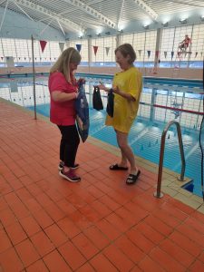 24th Oct 2024 – Helen McCarthy being shown how to use a pull buoy for swim training