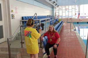 24th Oct 2024 – Filming poolside Helen McCarthy and Madfish Mayor of Charnwood Children in Need