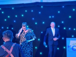 3rd Oct 2024 Winstanley House RCC Centenary Awards Tracey Pollard on stage winner