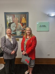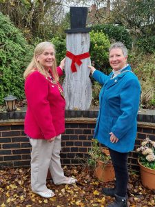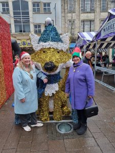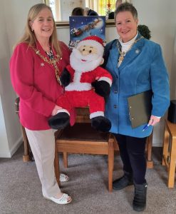 22nd Dec 2024 – Fiona Henry presents Syston K Banxy knitted Mayor to Cllr Dr Julie Bradshaw MBE
