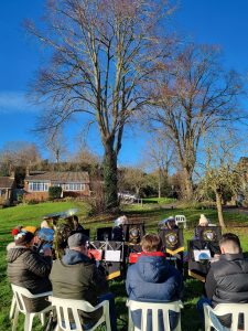 14th Dec 2024 – Carols on the Green Mountsorrel The Band and blue skies