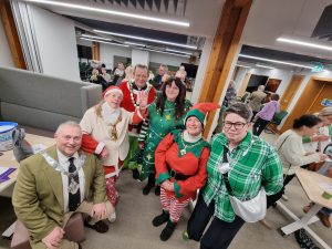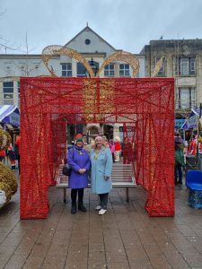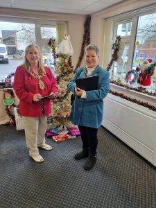 21st Dec 2024 – The Hut Christmas Party Felicity Chan with Carol Hardy Civic Officer Charnwood Borough Council
