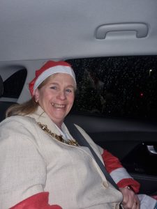 18th Dec 2024 – On the way to Mayor of Oadby Charity Carol Service Mayoress the Elf