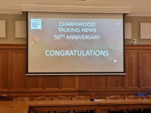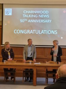 20th Dec 2024 – Charnwood Talking News 50th Loughborough University Emma speaking with Mayor and David Nosely