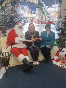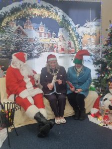 21st Dec 2024 – Christmas at The Hut Mayor and Mayoress speaking with Santa