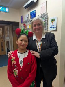 21st Dec 2024 – The Hut Christmas Party selfie Felicity Chan Mayor and Mayoress of Charnwood